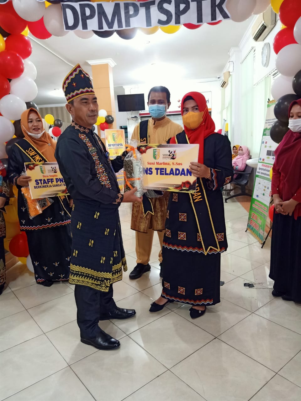 Plt. Kepala DPMPTSPTK memberikan penghargaan kepada Pejabat Eselon IV Berkinerja Sangan baik, Staf PNS hingga Staf Non PNS yang berkinerja baik