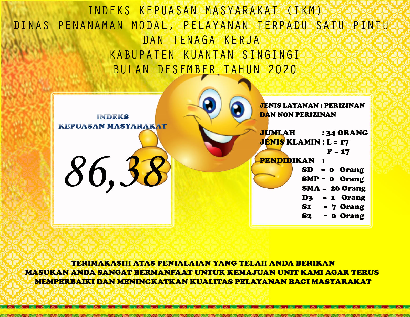 Indeks Kepuasan Masyarakat (IKM) bulan Desember DPMPTSPTK Kab. Kuantan Singingi