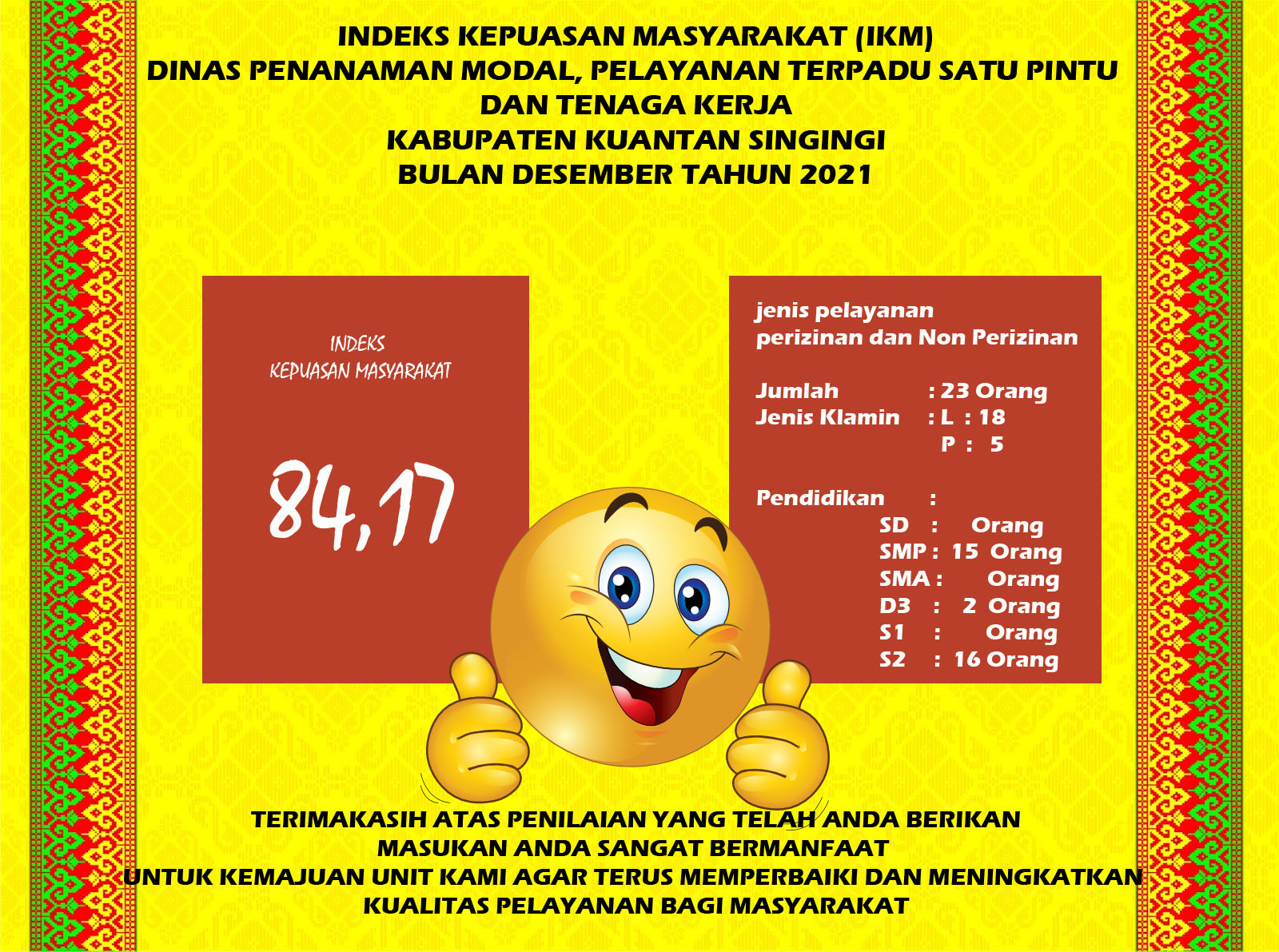 Indeks Kepuasan Masyarakat (IKM) bulan Desember Tahun 2021 DPMPTSPTK Kab. Kuantan Singingi