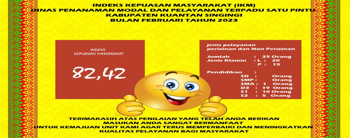 Indeks Kepuasan Masyarakat (IKM) bulan Februari Tahun 2023 DPMPTSP Kab. Kuantan Singingi