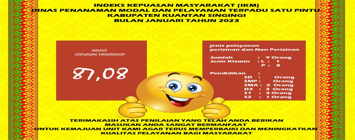 Indeks Kepuasan Masyarakat (IKM) bulan Januari Tahun 2023 DPMPTSP Kab. Kuantan Singingi
