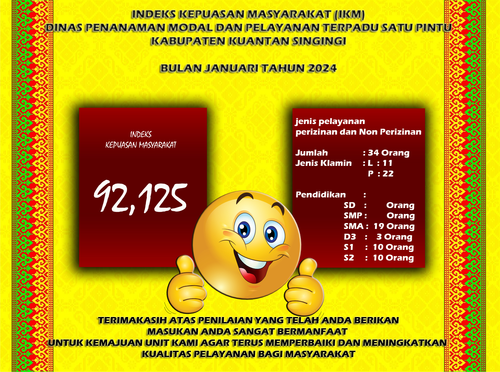 Indeks Kepuasan Masyarakat (IKM) bulan Januari Tahun 2024 DPMPTSP Kab. Kuantan Singingi