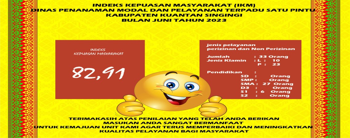 Indeks Kepuasan Masyarakat (IKM) bulan Juni Tahun 2023 DPMPTSP Kab. Kuantan Singingi