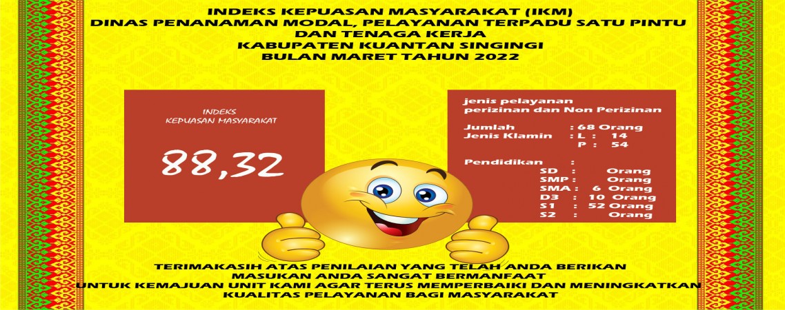 Indeks Kepuasan Masyarakat (IKM) bulan Maret Tahun 2022 DPMPTSPTK Kab. Kuantan Singingi