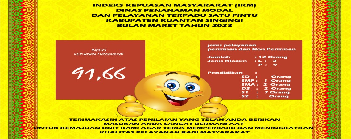 Indeks Kepuasan Masyarakat (IKM) bulan Maret Tahun 2023 DPMPTSP Kab. Kuantan Singingi