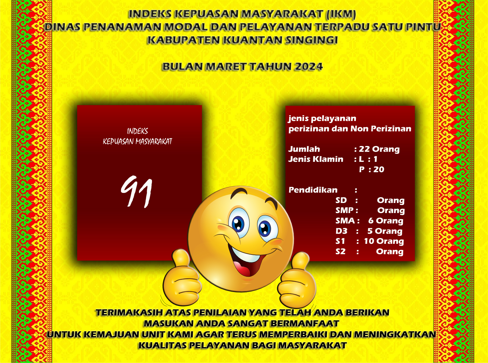 Indeks Kepuasan Masyarakat (IKM) bulan Maret Tahun 2024 DPMPTSP Kab. Kuantan Singingi