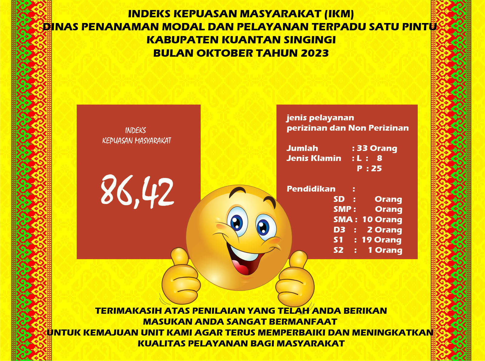 Indeks Kepuasan Masyarakat (IKM) bulan Oktober Tahun 2023 DPMPTSP Kab. Kuantan Singingi