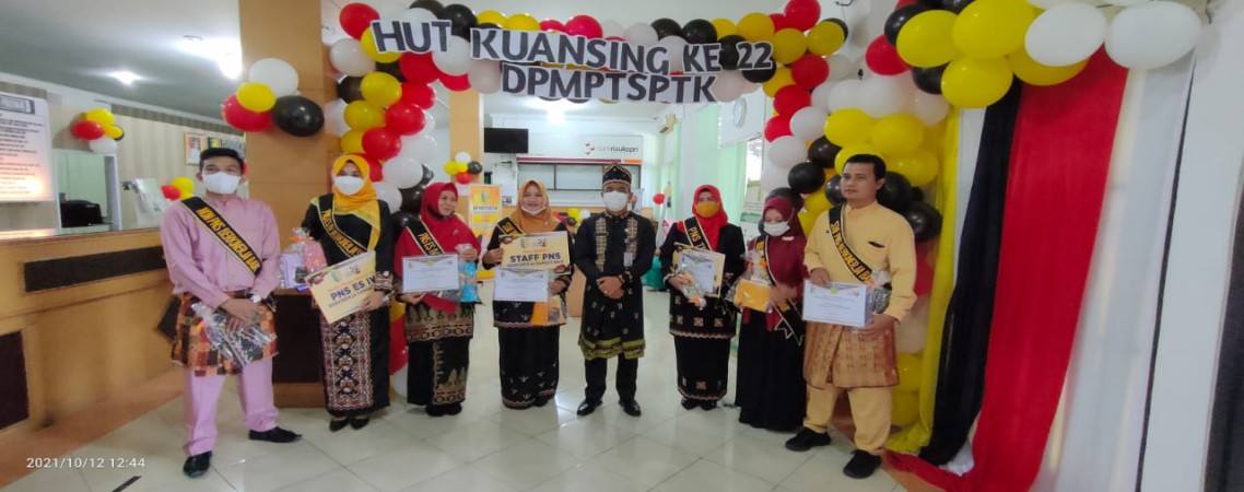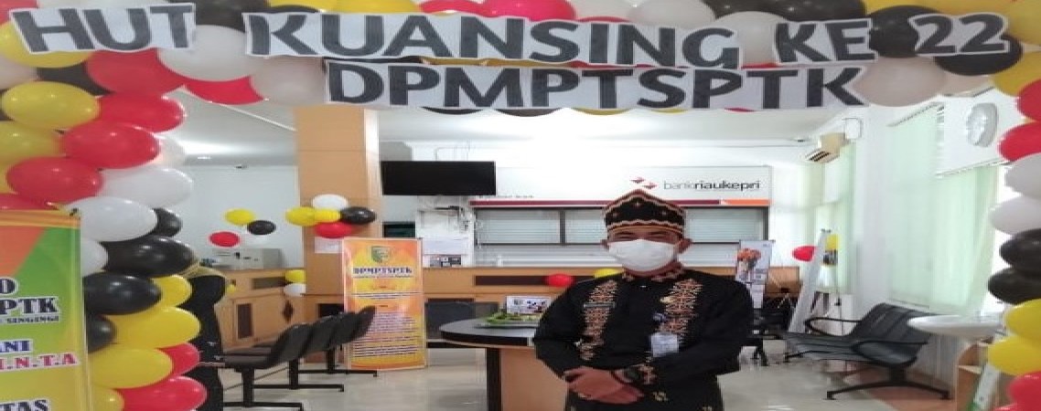 Kabupaten Kuantan Singingi memperingati hari jadi yang ke 22 pada tahun 2021, peringatan hari jadi dilaksanakan dilalapangan limuno Teluk Kuantan yang dihadiri oleh Bupati, Wakil Bupati, unsur Forkopimda dan para tokoh-tokoh pendiri Kabupaten Kuantan Singingi serta seluruh Organisasi Perangkat Daerah dengan protokol kesehatan. Adapun tema yang diusung dihari Jadi ke 22 ini adalah Bangkit Sehat Bersama menuju Kuantan Singingi Negeri Bermarwah. Bersempena dengan hal tersebut Dinas Penanaman Modal PTSP dan Tenaga Kerja Kabupaten Kuantan Singingi juga melaksanakan kegiatan yaitu memberikan penghargaan (reward) kepada Aparatur Sipil Negara dan Non Aparatur Sipil Negara yang berkinerja baik dan ASN teladan, hal ini adalah wujud nyata rasa syukur serta peningkatan kinerja birokrasi Pemerintah dalam memberikan pelayanan yang prima sesuai dengan visi dan misi Kabupaten Kuantan Singingi 2021-2026 mewujudkan manajemen birokrasi pemerintahan yang profesional melalaui tata kelola pemerintahan yang bersih, efektif, berwawasan dan demokratis.