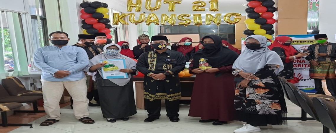 DPMPTSPNAKER Kabupaten Kuantan Singingi mengadakan kegiatan yang berbeda dimasa pandemi covid19 yang juga bersempena dengan peringatan hari jadi Kabupaten Kuantan Singingi ke 21 yaitu memberikan suovenir kepada masyarakat yang mengurus perizinan serta memberikan reward kepada sejumlah PNS dan Non PNS berkinerja baik dan berdisiplin baik di tahun 2020 ini.